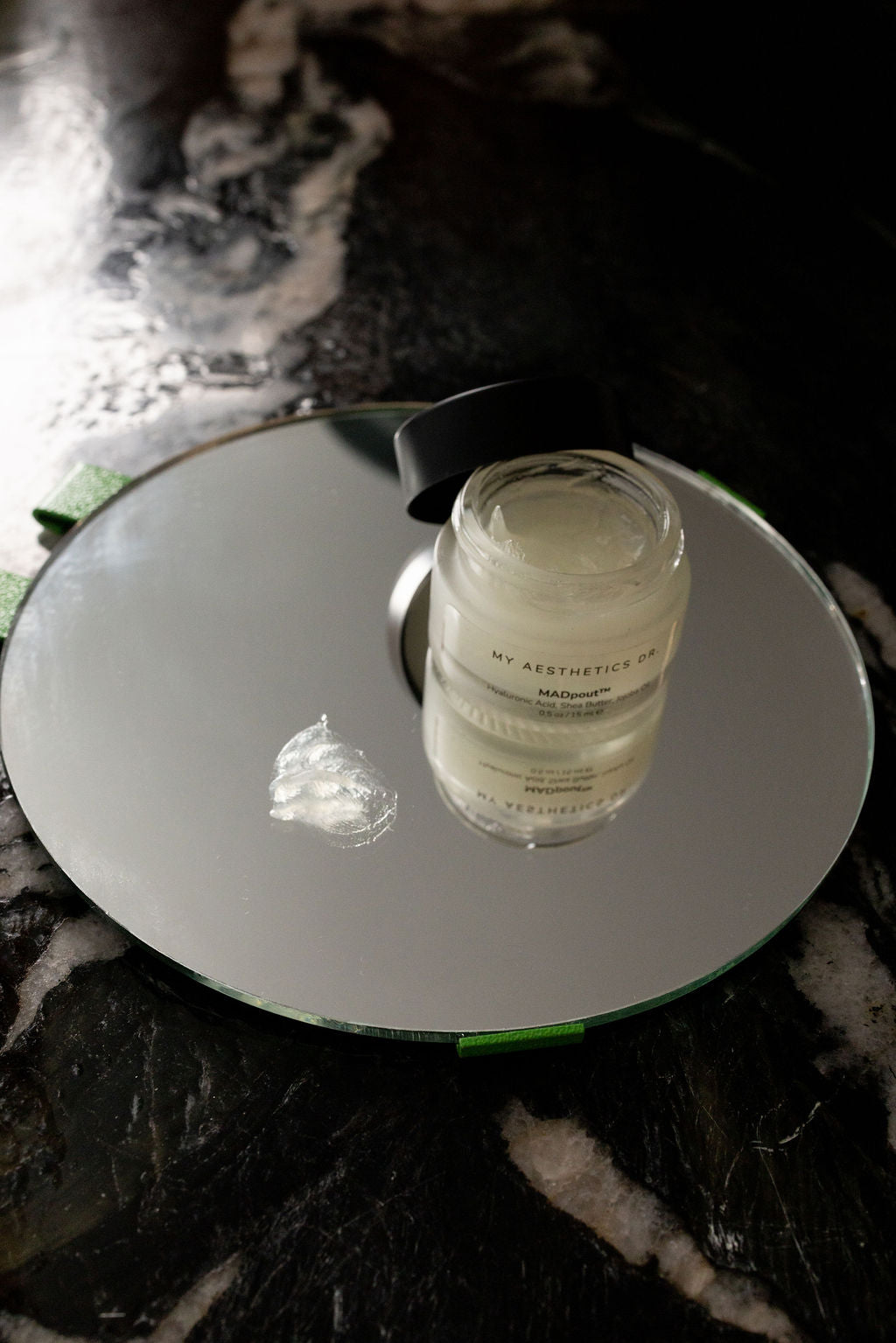 Hyaluronic Acid, Shea Butter, Olive Fruit Oil, Jojoba Oil